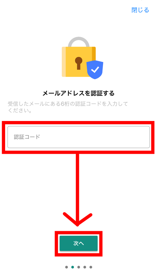CHEERBEアプリに戻ります。「認証コード」を入力し、「次へ」をタップします。